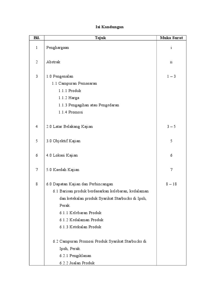 Contoh kerja kursus pengajian perniagaan bi l isi kandungan muka surat 1 tajuk 2 penghargaan 3 abstrak 4 isi kandungan 5 pengenalan 6 objektif kajian 7 latar belakang kajian 8 kaedah kajian 9 dapatan kajian 10 rumusan 11 rujukan 12 lampiran penghargaan 1 | k a j i a n p e m a s a r a n Nov 25, 2015 · contoh kerja kursus pengajian perniagaan tingkatan 6 penggal 3 2015 (stpm) ( kfc malaysia ). Pengajian perniagaan kerja kursus kaedah kajian. Contoh kerja kursus pengajian perniagaan tingkatan 6 penggal 3 2015. For more information and source,. Contoh kaedah kajian pengajian perniagaan. Perkongsian kaedah p p efektif 3. Kajian 5.0 batasan kajian 6.0 kaedah kajian 6.1 mendapatkan data 6.2. 2 0 objektif kajian 2 3 0 latar belakang lokasi kajian 3 4 0 kaedah kajian 8 12 4 1 data primer 4 1 1 temubual 4 1 2 soal selidik 4 1 3 pemerhatian 4 2 data sekunder 4 2 1 buku rujukan 4 2 2 laman sesawang 4 2 3 majalah. Pelajar boleh menggunakan dua kaedah iaitu kaedah kuantitatif dan kaedah kualitatif. More images for contoh kaedah kajian pengajian perniagaan » Contoh huraian kaedah kajian sejarah pt3 moga perkongsian contoh kaedah kajian tugasan sejarah pt3 2018 boleh dijadikan rujukan buat pelajar dalam menyiapkan kerja kursus pada masa yang telah ditetapkan. Objektif kajian ini ialah menganalisis campuran produk berdasarkan perbandingan.